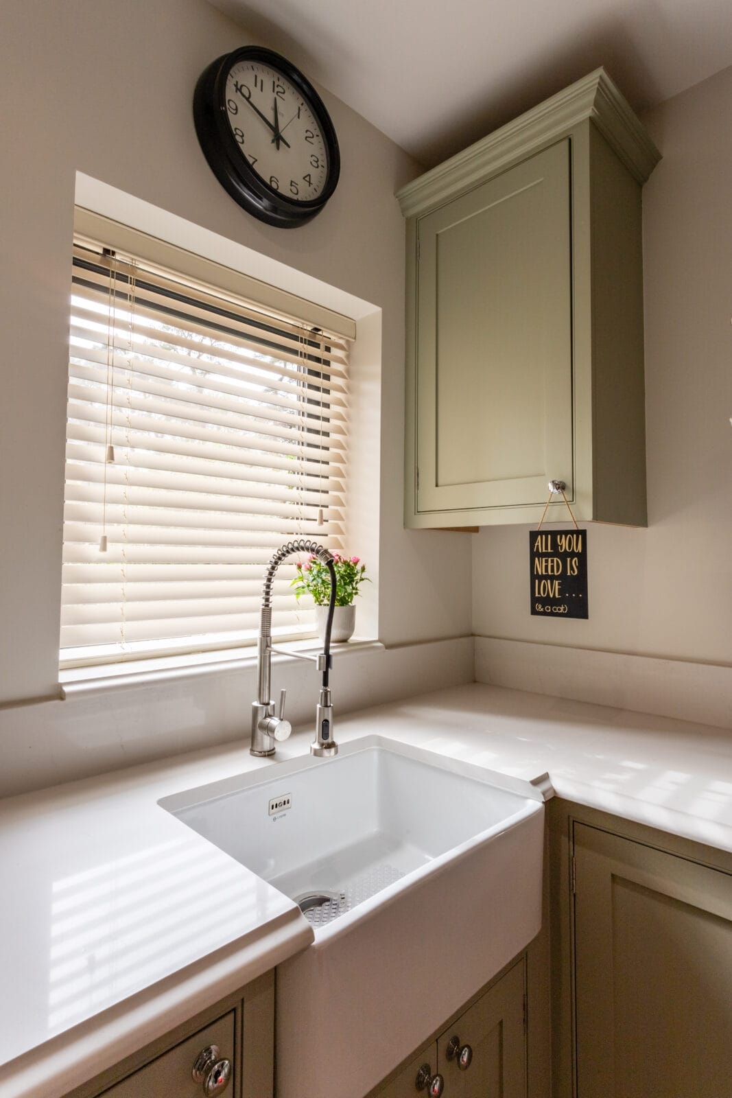 The standout feature of this installation is the full ogee edge detail, which adds a touch of traditional craftsmanship to the kitchen worktops, enhancing their luxurious feel. This intricate edging on the quartz elevates the design, proving that small details make a big difference when choosing high-end finishes.