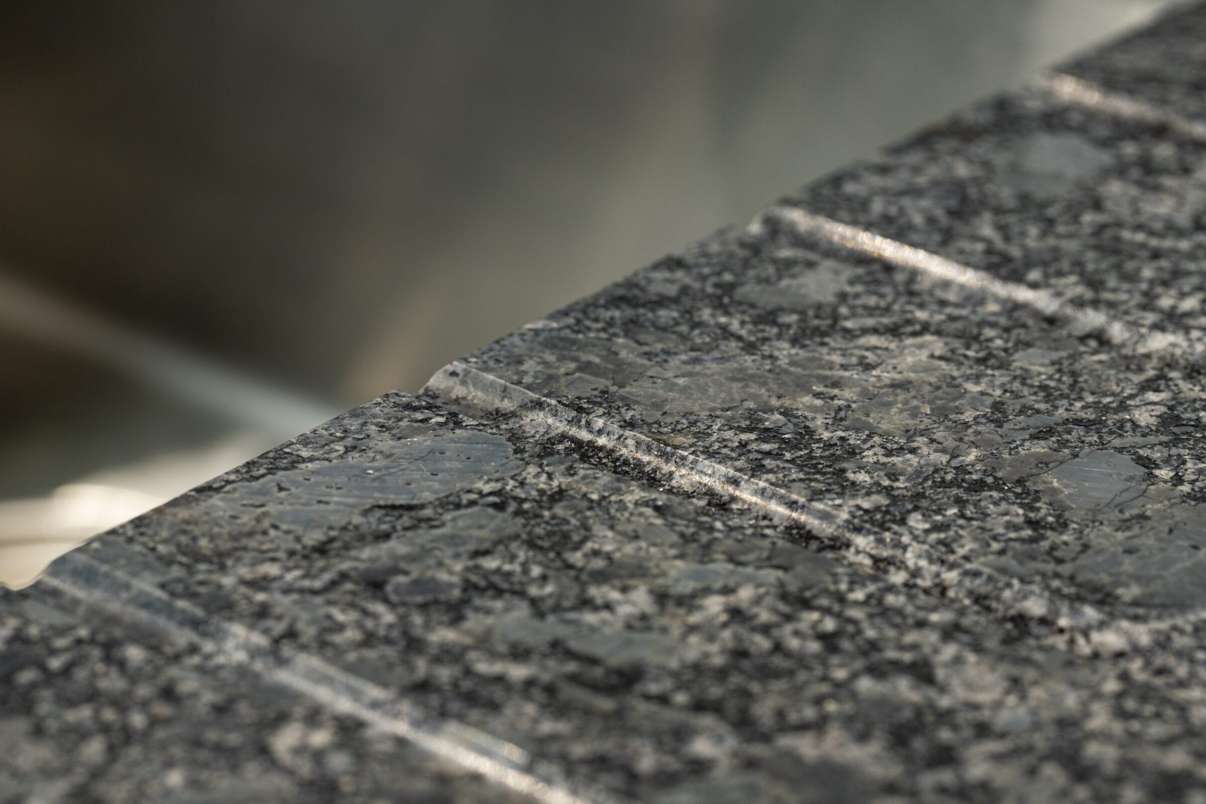 Up close of the steel grey leathered granite. This is a textured granite suitable for kitchens, bathrooms and hearths โจ
